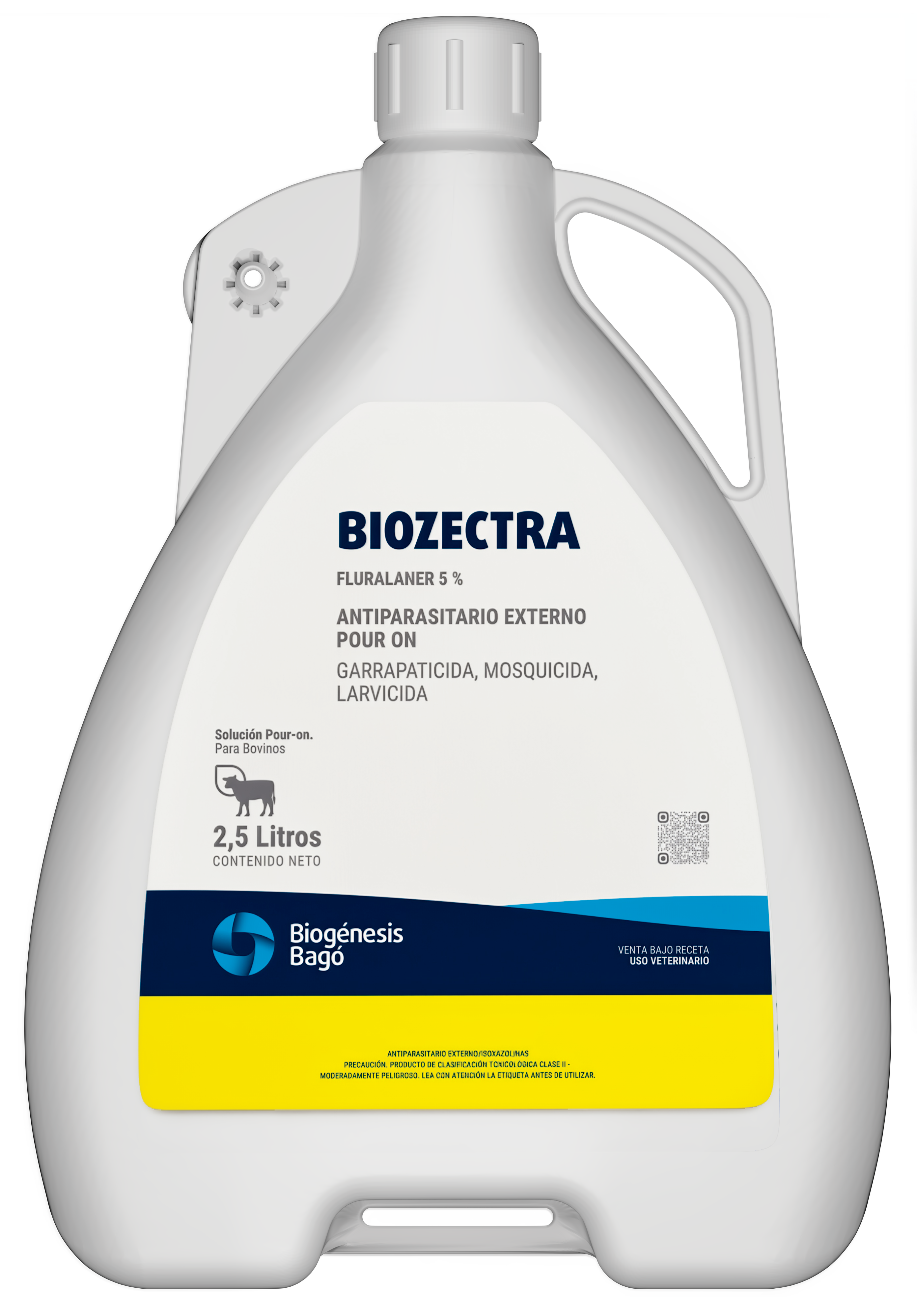 Biozectra es un antiparasitario externo pour-on para bovinos, desarrollado con fluralaner 5%, una molécula de última generación que viene a complementar las soluciones que Biogénesis Bagó ofrece actualmente en el mercado.