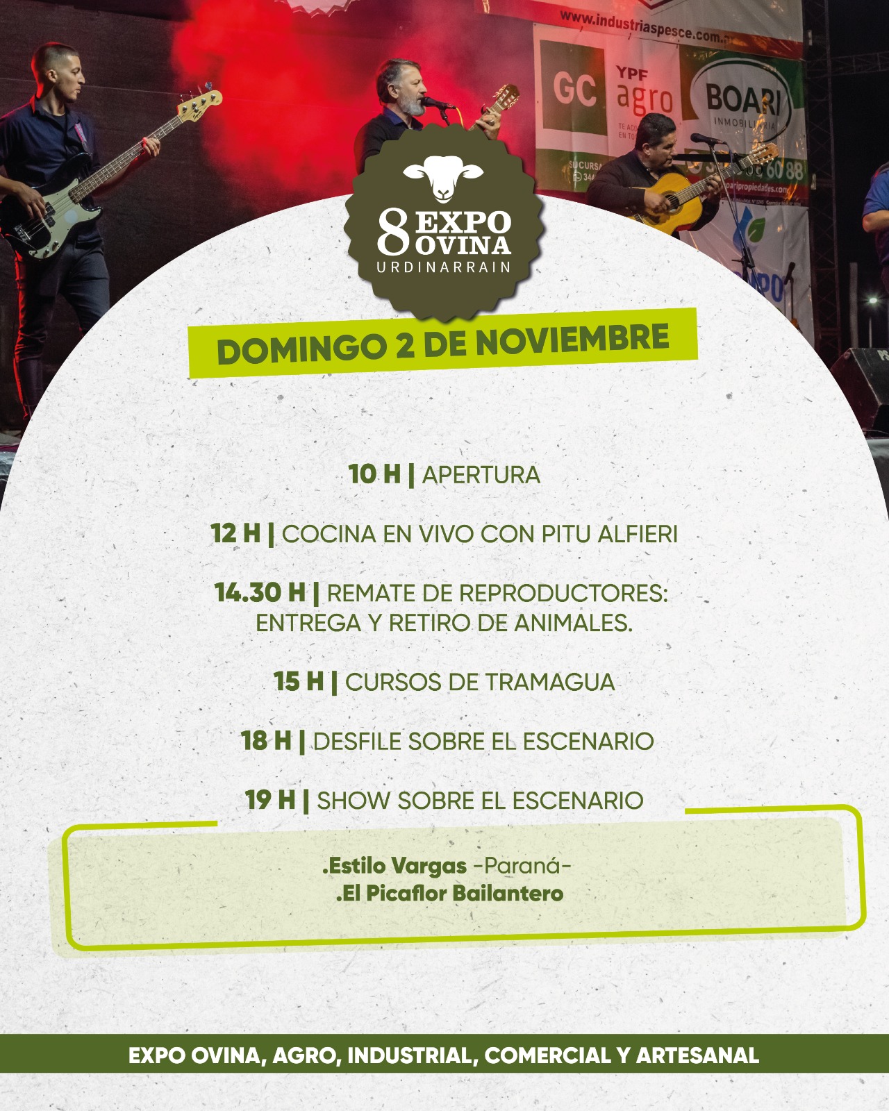 Con entrada libre y gratuita, el Polideportivo Municipal de Urdinarrain será sede de la 8° Expo Ovina, donde se desplegará un paseo agroindustrial, de emprendedores, gastronomía, artesanos, shows en vivo, y la 1º Exposición Nacional de la Raza Romney Marsh.