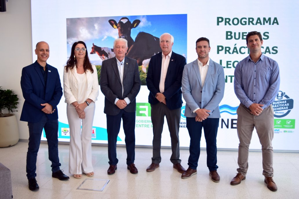 Relanzaron el programa de buenas prácticas lecheras para mejorar la producción en Entre Ríos durante una jornada realizada este viernes en el Mirador TEC, en Paraná, con la participación del ministro de Desarrollo Económico, Guillermo Bernaudo; el director de Producción Animal, Martín Sieber; el coordinador de lechería, Horacio Jaureguiberry; el secretario de Agricultura, Ganadería y Pesca, Raúl Boc-Ho; y representantes de la Universidad Nacional de Entre Ríos (UNER) y del sector productivo.