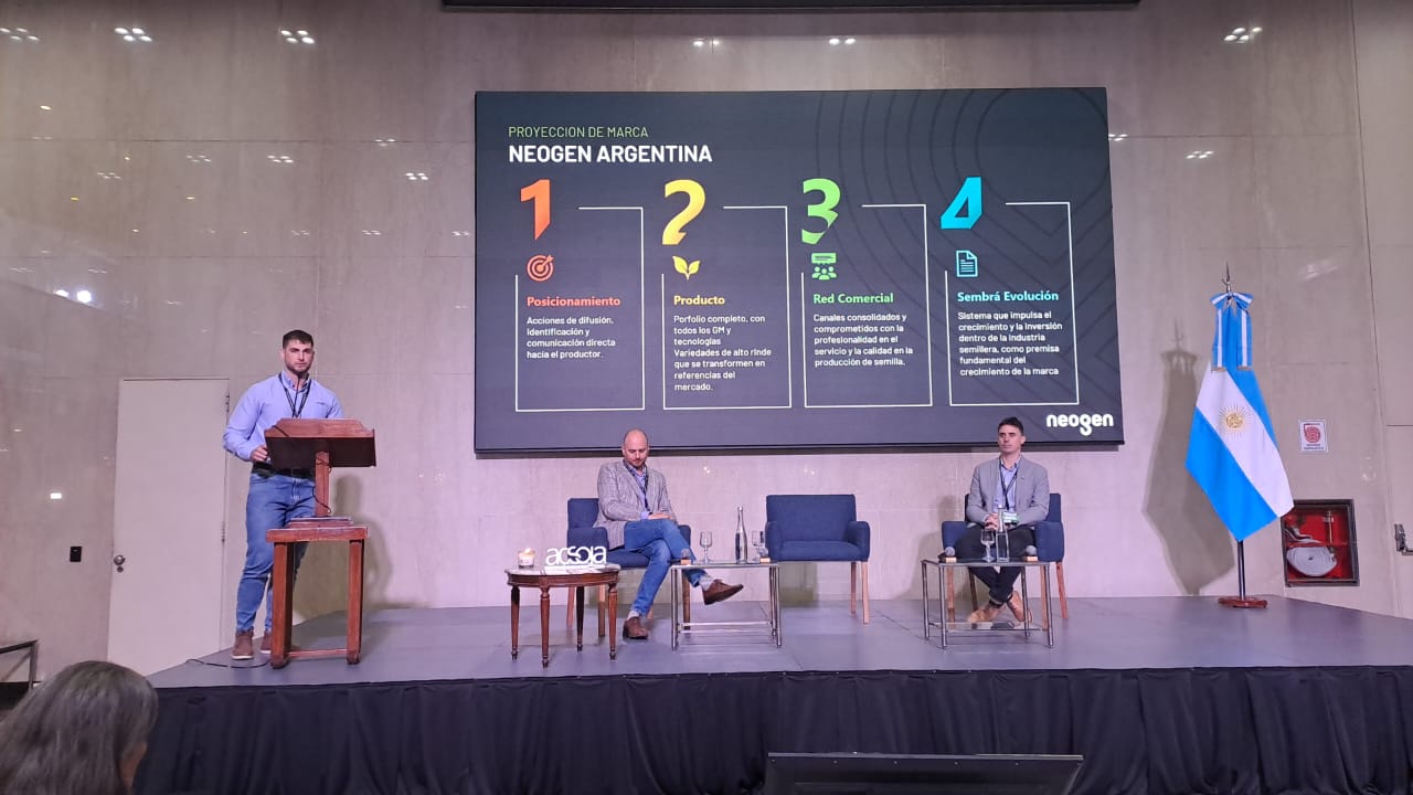 Durante su participación en el panel "Insumos, novedades en Semillas", Rodríguez Landa explicó la estrategia de posicionamiento de Neogen, destacando su consolidación a nivel global y sus proyecciones específicas para el mercado local.