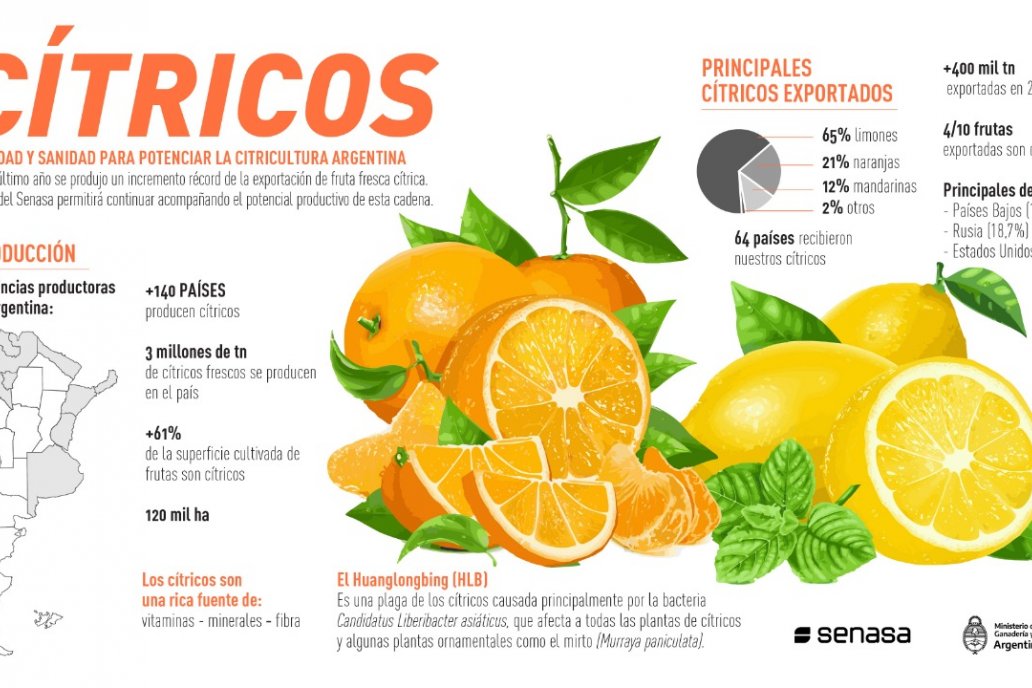 Los cítricos son uno de los principales cultivos frutales a nivel mundial que se producen en más de 140 países; dentro de este grupo, los más cultivados son los limones, las naranjas, las mandarinas y los pomelos: estos se comercializan y consumen principalmente como fruta fresca, jugo o concentrado, según datos de la Organización de las Naciones Unidas para la Alimentación y la Agricultura.