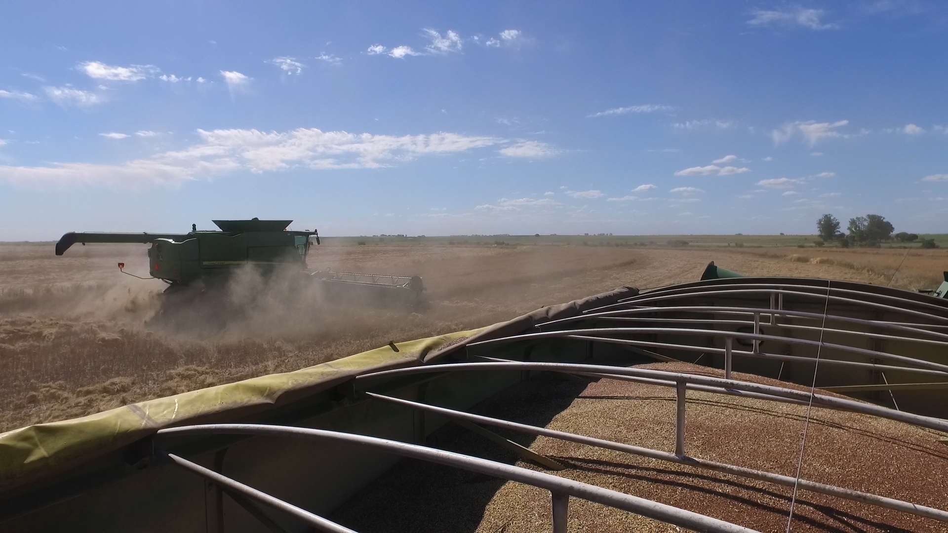 En la trilla ponen toda la atención y concentración; sucede que cualquier descuido genera pérdidas de granos por la cola de la cosechadora. El fruto del esfuerzo se destina a multiplicar semillas y comercializar en cooperativas de la zona.