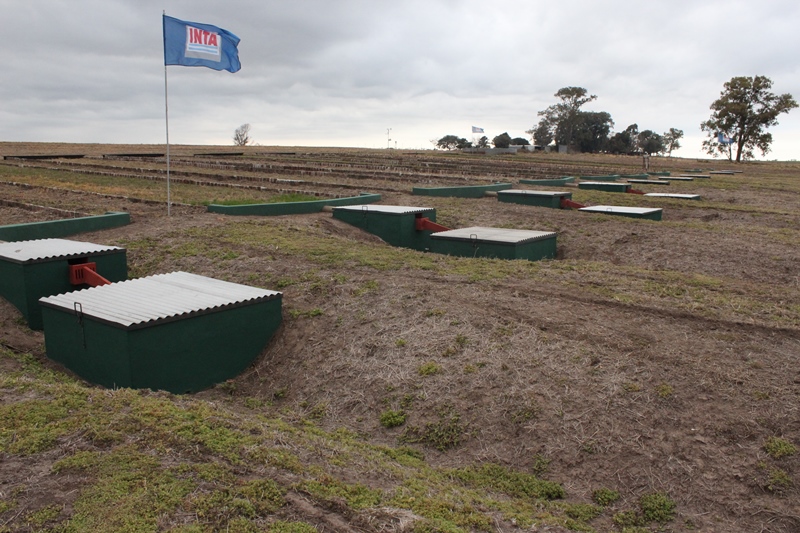 “El dispositivo experimental está conformado por 15 parcelas de 100 metros cuadrados que permiten el control de los ingresos de agua de las lluvias, la medición de los excedentes hídricos por escurrimiento y el desplazamiento de sedimentos”, explicó Sasal y agregó: “Las parcelas miden cuatro metros de frente y 25 de largo con una pendiente natural de 3,5 %. Fueron construidas con bordes laterales de mampostería y con la pared de fondo desmontable para facilitar el ingreso de las maquinarias. Cada una posee un embudo con tubo colector que desemboca en dos piletas receptoras de escurrimientos”.