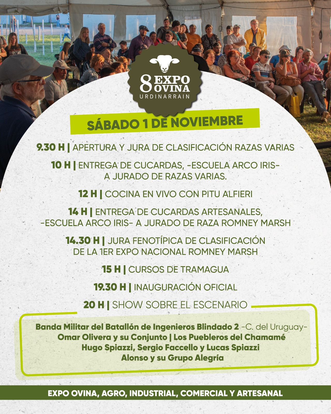 Con entrada libre y gratuita, el Polideportivo Municipal de Urdinarrain será sede de la 8° Expo Ovina, donde se desplegará un paseo agroindustrial, de emprendedores, gastronomía, artesanos, shows en vivo, y la 1º Exposición Nacional de la Raza Romney Marsh.
