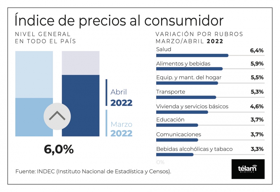 El índice de precios al consumidor subió en abril 6%, siete décimas por debajo del 6,7% registrado en marzo, informó este jueves el Instituto Nacional de Estadística y Censos (Indec).
