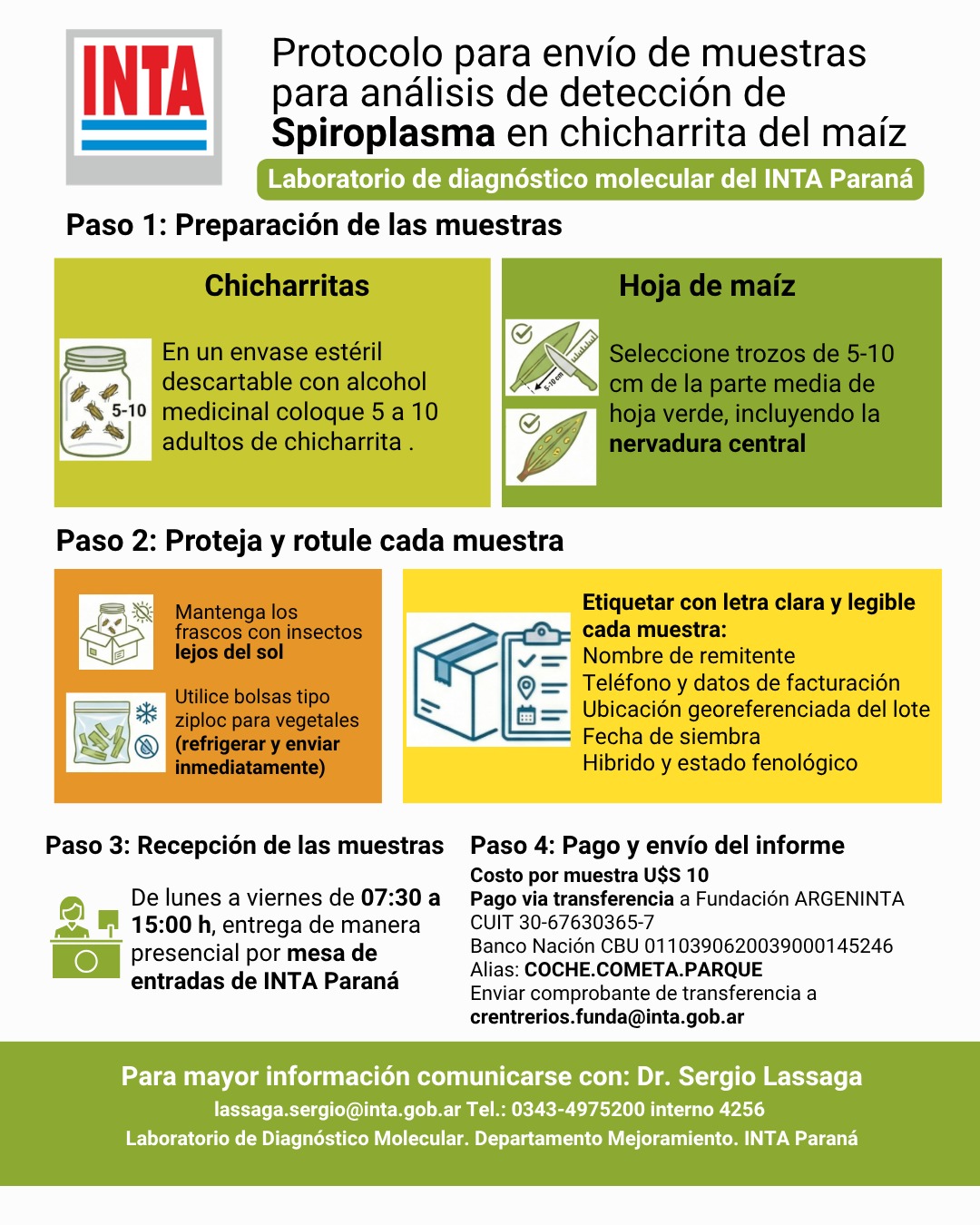 Está activo el laboraorio regional para la detección de Spiroplasma, el principal patógeno asociado al complejo de achaparramiento del maíz, que sepresentó el mes pasado en Expoagro. La iniciativa sirve a los productores maiceros entrerrianos en su lucha contra la plaga. Este servicio permite confirmar la presencia del patógeno y tomar decisiones de manejo más precisas.