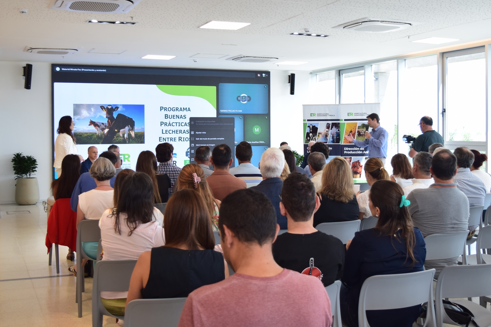 Relanzaron el programa de buenas prácticas lecheras para mejorar la producción en Entre Ríos durante una jornada realizada este viernes en el Mirador TEC, en Paraná, con la participación del ministro de Desarrollo Económico, Guillermo Bernaudo; el director de Producción Animal, Martín Sieber; el coordinador de lechería, Horacio Jaureguiberry; el secretario de Agricultura, Ganadería y Pesca, Raúl Boc-Ho; y representantes de la Universidad Nacional de Entre Ríos (UNER) y del sector productivo.