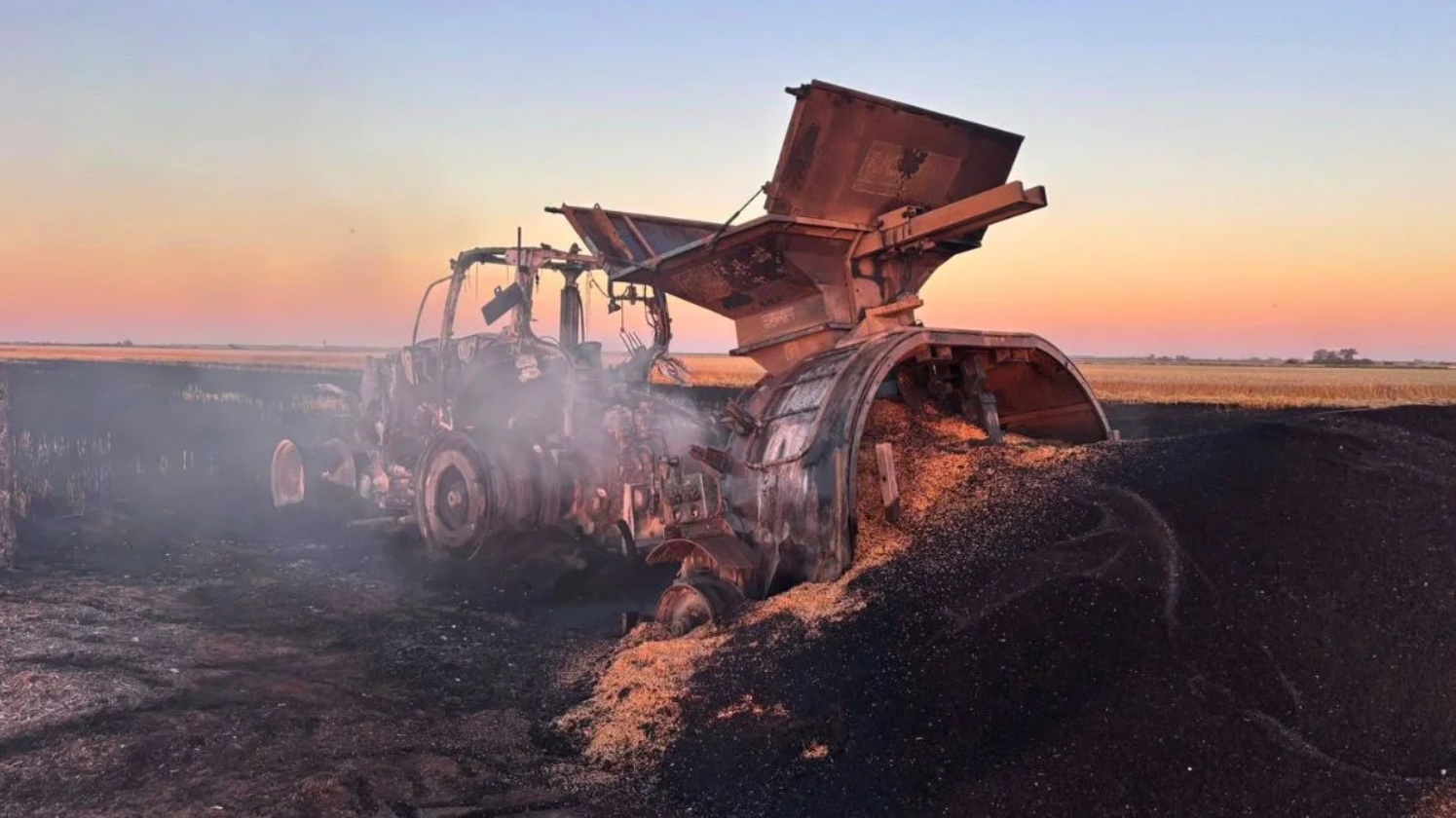Tractor, embolsadora destruidos en María Juana